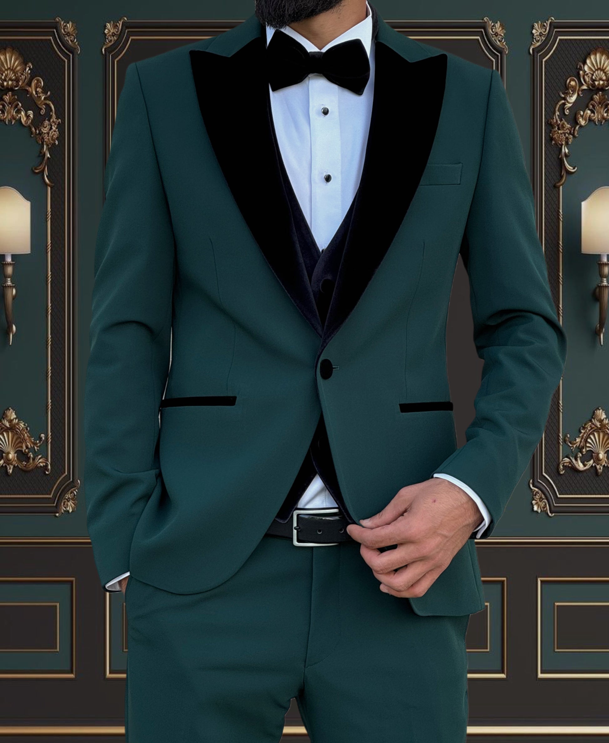 GREEN SLIM-FIT MENS TUXEDO 3 PIECE VELVET PEAK LAPEL